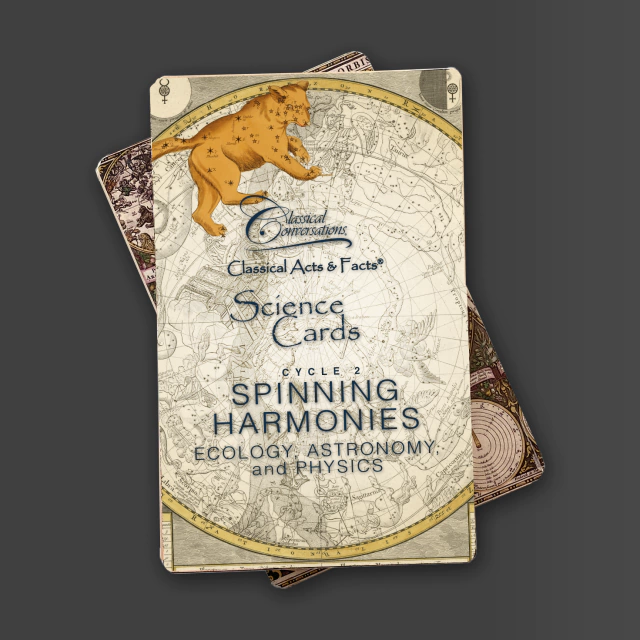 Science Cards (one for each question) has a picture with labels on front (ex. Cell), and the question plus answer (from the Foundation Guide) on the back, along with extra information supporting the answer and a “go deeper” fun fact. Some cards are bonus, extra-challenge questions that are not found in the Guide. Cycle 1 is Biology and Earth Science, Cycle 2 is Ecology, Physics, and Astronomy. Cycle 3 is Anatomy, Chemistry, and Origins. The Famous Scientists cards can be used with all three Cycles.